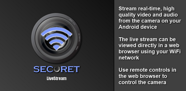 Fluxo de vídeo e áudio da câmera do dispositivo Android diretamente através de sua rede Wi-Fi em tempo real, para ser visto e controlado remotamente em um navegador web ou em outro dispositivo Android. Pode ser usado para espionar as pessoas, um dispositivo de vigilância séria ou apenas por diversão!